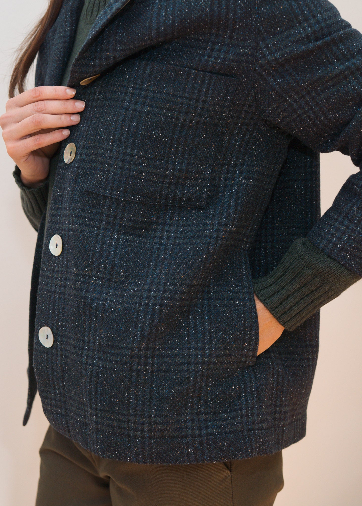 Aggiungi un tocco di eleganza al tuo guardaroba con questa giacca ampia dal design moderno. Il collo sportivo dona un look casual-chic, mentre i bottoni in madreperla riflettono un sofisticato dettaglio di classe. Le finiture in seta assicurano una sensazione di morbidezza e lusso al tatto. Con una lunghezza dalle spalle di 72 cm, questa giacca è perfetta per essere abbinata a qualsiasi outfit, offrendo un'ottima vestibilità e un aspetto sempre curato. Ideale per ogni occasione, dal lavoro al tempo libero.