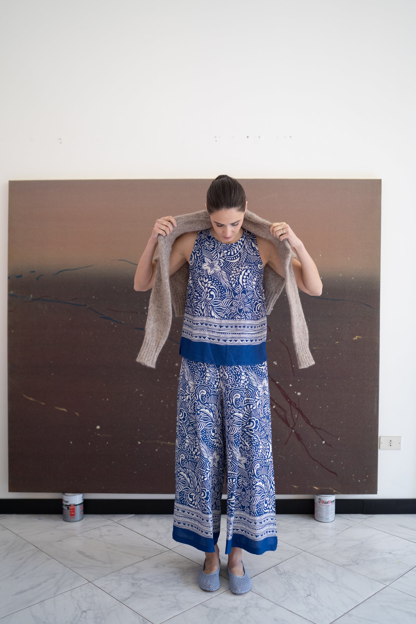 "Dammi un Parisette e non avrò più bisogno di nulla". Parisette è il nostro pantalone adorato: a vita alta con doppia pince, tasche laterali, chiusura con bottone e zip. Sei magrissima? Parisette cade fluido e ti rende altera come una principessa. Hai forme più generose e mediterranee? Parisette le  accarezza senza sottolinearle. Ami il look sportivo? Parisette è perfetto con le sneaker. Hai un incontro di lavoro o hai una cena  formale? basta abbinarlo con una camicia elegante o una scarpa preziosa e "les jeux sont faits!". Provalo: non potrai più farne a meno e vorrai tutti i colori delle viscose della nostra nuova palette primaverile. Avviso alle viaggiatrici: Parisette piegato diventa minuscolo e lascerà lo spazio per portare con te outfit completi anche in valigie compatte e piccoline.